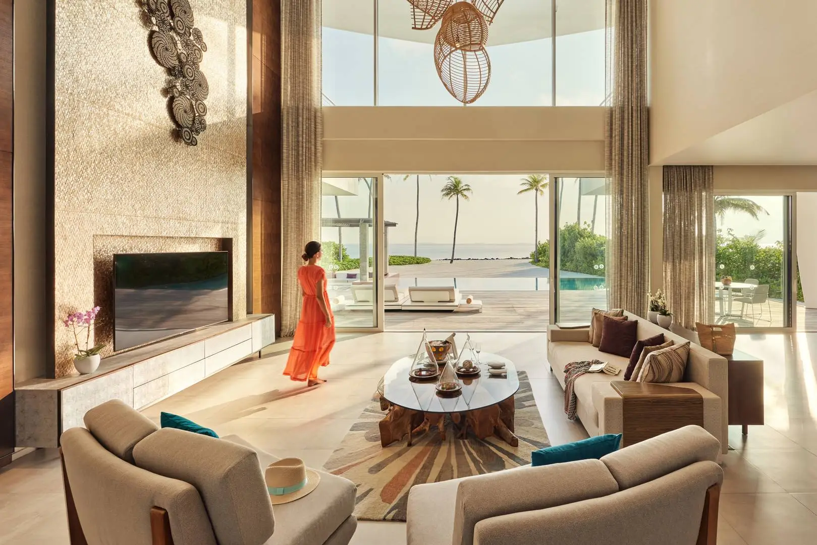 This expansive 977 sqm haven houses three enchanting ensuite bedrooms above the crystalline lagoon, while spacious living and dining areas ensure ultimate comfort and serenity. As the golden hour casts its magic, ascend to the rooftop oasis or the shaded sunken outdoor lounge to witness awe-inspiring vistas. With its ultra-spacious open indoor-outdoor spaces and a spectacular 7.6 square metre glass floor, marked by innovation, design excellence, and meticulous attention to detail, crafting the perfect backdrop for experiencing the essence of Jumeirah Olhahali Island with your cherished companions. This is luxurious elegance redefined, and it is yours to explore at HIRI.