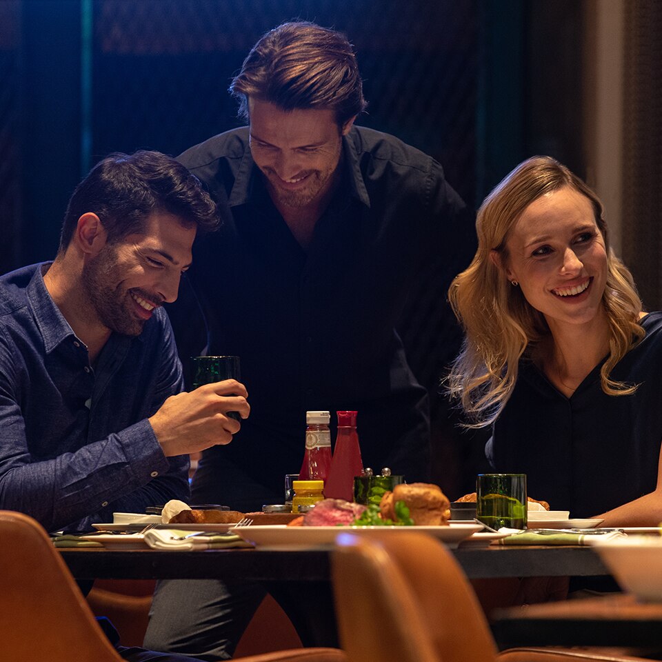 Enjoy an evening of steak frites paired with a glass of red wine while overlooking our cityscape views.