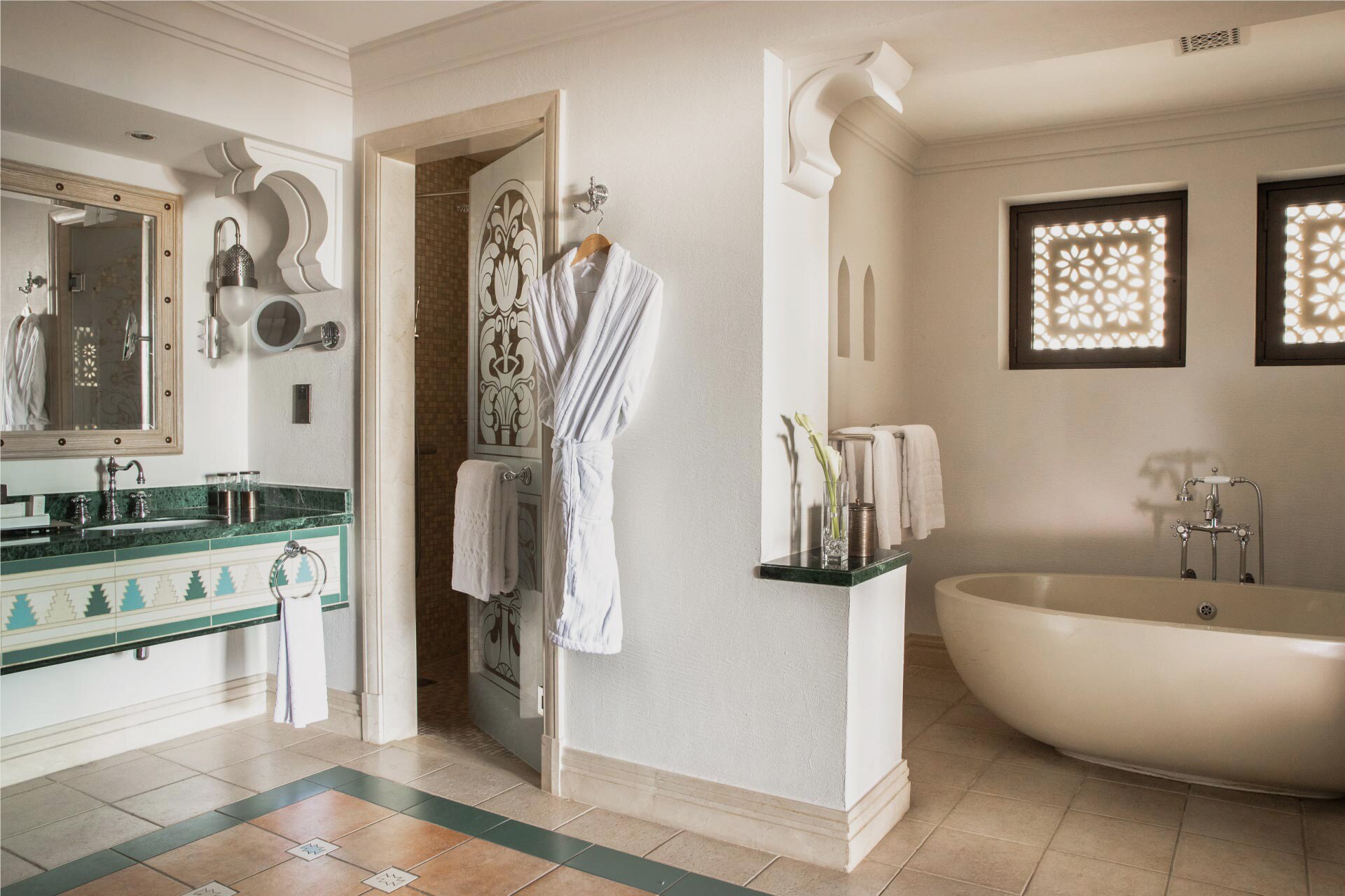 - 宽敞的大理石浴室